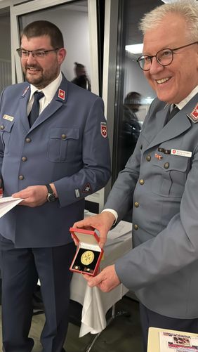 Den zunehmenden natur- und krisenbedingten Bedrohungen stellt sich die schlagkräftige ehrenamtliche Einsatzeinheit im Bevölkerungs- und Katastrophenschutz entgegen. Besonders geehrt wurde Thorsten Droste, Leiter der Verpflegungsgruppe, für 25-jähriges Engagement mit der Dankplakette in Gold.