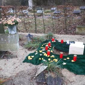Neben dem Austausch mit anderen Betroffenen ist es für „Sternenkinder“-Eltern wichtig zu wissen, den Ort zu kennen, an dem ihr Kind beerdigt ist. An der Grabstelle für totgeborene Kinder auf dem Friedhof in Rebdorf finden dreimal jährlich die Bestattungen statt. Um die Pflege des Rebdorfer Kindergrabes kümmert sich eine Ehrenamtsgruppe der Eichstätter Malteser. Die Gruppe sorgt außerdem für eine angemessene Gestaltung der Begräbnisse. Die nächste Sternenkinder-Bestattung wird am 26. Juli begangen.
