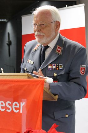 Kreisbrandmeister René Wauro stellte in seinem Grußwort die Arbeit der unteren Katastrophenschutzbehörde vor und dankte den Maltesern für die gute Zusammenarbeit und Unterstützung im Bereich des Bevölkerungsschutzes. Oberbürgermeister Holzwarth ging auf den Bau einer Fahrzeughalle für die Malteser im Buchenhain ein, der Stadt, Kirchengemeinde und Malteser 2019 beschäftigen wird und gratulierte zum erfolgreichen Wachstum der Gliederung, die laut Edmund Baur seit Jahren vorbildhaft im Bundesgebiet ist.