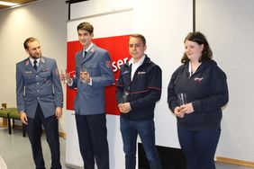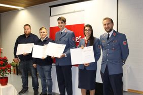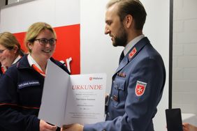 - Mit der Anerkennungsurkunde des Malteser Hilfsdiensts: Kai Gerhardt, Jasmine Höpfer, Alec Irmscher, Tobias Keil