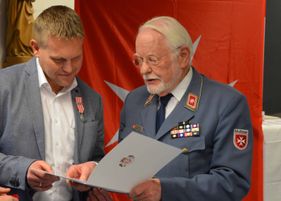 Die Pandemie hat der Gesellschaft, aber auch den Blaulichtorganisationen alles abverlangt. In der Krise sind diese immer enger zusammengerückt und haben die Aufgaben gemeinsam gestemmt. Von diesem Blickwinkel aus betrachtet, geht die Blaulichtfamilie gestärkt aus der Krise. Als Zeichen der Anerkennung und Dankbarkeit für die hervorragende Zusammenarbeit wurde auch Sven Knödler, Geschäftsführer des Kreisverbandes des Deutschen Roten Kreuzes, mit der Medaille „Covid-19“ ausgezeichnet.