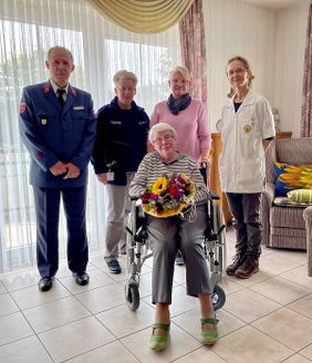 „Am Abend kommt erneut der Pflegedienst und bringt mich wieder ins Bett. Ich finde es schön in meiner Wohnung leben zu können und möchte dies auch so lange wie möglich tun. Und nur Dank des Pflegedienstes, des Malteser Menüservices und meines Betreuers ist dies möglich“, sagt Irmgard Remmert und freut sich sehr über die bunten Blumengrüße ihrer Gratulanten.