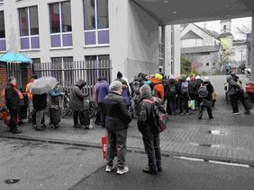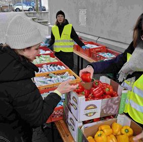 Bereits am frühen Morgen warteten zahlreiche Gäste vor dem Tor. Diese hatten zuerst die Möglichkeit, sich in der Kleiderkammer mit gespendeten Kleidungsstücken zu versorgen. Dank der ‚Winterhilfe des Landes NRW‘ konnten im Vorfeld Unterwäsche und Socken eingekauft werden, da diese aus hygienischen Gründen grundsätzlich nicht als Spenden angenommen werden. Alle 120 Gäste waren im Ursulasaal zu einem leckeren Frühstück incl. Rührei und frisch gebackenen Waffeln eingeladen. Von der Malteser-Feldküche wurde zusätzlich eine heiße Suppe angeboten. Im Saal unterstützen Schülerinnen der Ursulinenschule u.a. beim Service und nutzten die Möglichkeit zu Gesprächen an den Tischen. Als ‚letzte Station‘ war wieder eine Ausgabestelle mit Hygieneartikeln und Vitaminen - in Form von Paprika, dunklen Trauben und Tomaten – aufgebaut.