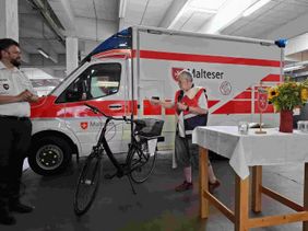 Im Anschluss nahm Diakon Ralf Schwenk noch zwei Segnungen vor: Im Rettungsdienst ist ein neuer und bestens ausgestatteter RTW im Einsatz und die Koordinationskräfte des Hospizdienstes sinnan können seit kurzer Zeit ein neues Dienst-Fahrrad nutzen. Mögen beide Fahrzeuge mit ihren Insassen bzw. Fahrer:innen stets unfallfrei unterwegs sein!