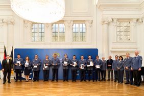 In der Feierstunde im baden-württembergischen Innenministerium wurden rund 120 Einsatzkräfte geehrt. In den nächsten Wochen händigen die Regierungspräsidien die Fluthilfemedaillen 2021 an alle weiteren rund 2.280 Einsatzkräfte aus.