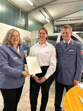 Im Anschluss an die Fahrzeugsegnung stand schließlich noch die Berufung eines neuen Stadtbeauftragten an. Der bisher amtierende Beauftragte, Oliver Schröder musste aus beruflichen Gründen in die zweite Reihe zurücktreten und legte sein Amt daher nieder. An seine Stelle tritt nun Sabrina Kudera in die Funktion der Stadtbeauftragten, in das die stellv. Diözesanleiterin, Marion Freiin von Graes die 43-jährige Rietbergerin nun beruf. Gleichzeitig bedankte sie sich bei ihrem Vorgänger für die langjährige Arbeit innerhalb des Vereins.