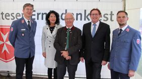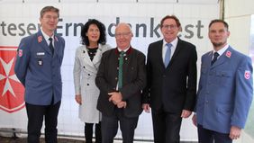 Rosenheim. Zum ersten Mal haben die Rosenheimer Malteser Anfang Oktober mit geladenen Gästen Erntedank gefeiert. Die Veranstaltung, die den bisherigen Neujahrsempfang im Januar ablöst, stellt noch mehr den Dank in den Mittelpunkt – an Kooperationspartner, andere Hilfsorganisationen, Behörden, Politiker, Förderer, Medien, Vertreter anderer Malteser Gliederungen sowie die eigenen ehren- und hauptamtlichen Mitarbeiter und Helfer. Zentrales Element des Dankens in der katholischen Hilfsorganisation ist aber auch der Dank an den Herrgott, der seine segnende Hand über die Organisation und ihr Wirken hält. Dazu hielt Stadtpfarrer und Malteser Gliederungsseelsorger Andreas Maria Zach eine bewegende Andacht.