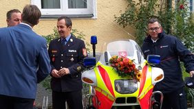Zum Abschluss des offiziellen Teils übernahm Kreisbrandrat Richard Schrank die Patenschaft für das zweite Motorrad der in diesem Jahr ins Leben gerufenen Malteser Motorradstaffel. Die Patenschaft für das andere Motorrad hatte im Frühjahr bereits Robert Kopp, Präsident des Polizeipräsidiums Oberbayern Süd, übernommen.