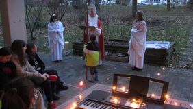 Irschenberg/Rosenheim/Hanau. Ob der Nikolaus in diesem Corona-Jahr wohl kommen würde? Oder würde er aufgrund seines Alters als Risikopatient zuhause bleiben müssen? Geduldig warteten die Kinder und Jugendlichen im Caritas Kinderdorf am Nikolaustag in ihren Häusern und wurden am Nachmittag belohnt: Jede der Gruppen mit jeweils fünf bis neun Kindern bekam auf der eigenen Terrasse mit ausreichend Abstand Besuch vom Nikolaus, der von zwei Engeln begleitet wurde. In seinem großen Buch las er über jedes Kind und jeden Jugendlichen und nahm sich etwas Zeit. Schließlich überreichten die Engel die persönlichen Geschenke und erfüllten damit die Wünsche der Kinder und Jugendlichen, von denen der Nikolaus auf den Wunschzetteln gelesen hatte. Auch der Nikolaus und die Engel wurden beschenkt, denn die Kinder trugen eigens geschriebene Gedichte vor, sangen Lieder, spielten auf verschiedensten Instrumenten oder übergaben ein selbst gemaltes Bild oder ein kleines Willkommensgeschenk.