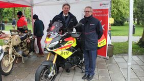 Die Malteser waren an beiden Tagen präsent. Am Samstag zeigten sie in der Münchner Straße die beiden Einsatzmotorräder der neuen Motorradstaffel sowie ein historisches Exemplar. Der Stand war den ganzen Tag gut besucht und viele Kinder wollten auf einem der Motorräder sitzen. Stefan Klimt, Kevin Braun und Andreas Lukas hatten viel zu tun, die ausgestellten Fahrzeuge vorzustellen und die Geschichte um die Gründung der Motorradstaffel zu erzählen.