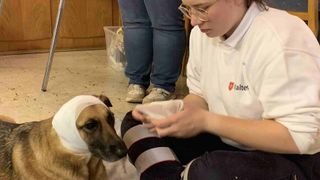 Den Notfall erkennen und Erste Hilfe leisten können, das lernt man im Erste-Hilfe-Kurs. Dass das auch bei Hunden wichtig sein kann, wissen Hundebesitzer nur zu gut. Deshalb bieten die Malteser Rothenfels Kurse in "Erste Hilfe am Hund" an. In knapp 4 Stunden vermitteln wir umfangreiches Wissen: Überprüfung der Vitalfunktionen eines Hundes, Erkennen von Symptomen der für Hunde lebensbedrohlichen Magendrehung oder Maßnahmen bei einem epileptischen Anfall, Transport verletzter oder bewusstloser Hunde, Verbände und vieles mehr.