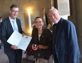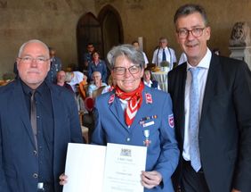 Christina Gold erhält die Auszeichnung für 25 Jahre Engagement bei den Maltesern, das weit über ihre hauptamtliche Tätigkeit als Pressesprecherin hinausgeht.