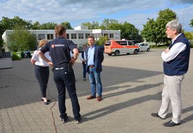 Hannover. Am Vorabend seines Besuches auf der Messe „Interschutz“ in Hannover hat Albrecht Prinz von Croy, ehrenamtlicher Vizepräsident des Malteser Hilfsdienstes, am Montagabend, 20. Juni, die Diözesan- und Stadtgeschäftsstelle der Malteser in Hannover besucht. Im Gespräch mit Diözesanleiter Max Freiherr von Boeselager und seiner Frau, Diözesanoberin Marie-Rose Freifrau von Boeselager sowie einiger Referenten informierte sich der Vizepräsident über die Dienste der Stadtgeschäftsstelle. Besonders interessiert zeigte sich Prinz von Croy, der sich in seiner rheinländischen Heimat insbesondere für Obdachlose engagiert, am Kältebus und dem neuen Projekt MOBALNI, das Obdachlosen ab dem kommenden Jahr das Duschen in abgeschlossenen Kabinen ermöglichen wird.