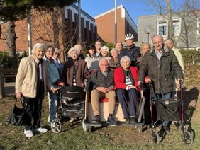 Bettina Weik mit einer Rikscha vor und lud die meist älteren Damen