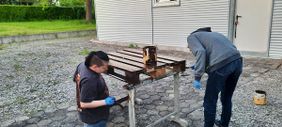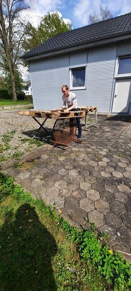 Mit dem Recycling der Paletten sorgen wir nicht nur dafür, dass unsere begrenzten Ressourcen geschont werden. Wir schaffen als Team auch etwas für die Gesellschaft. Die Sitzecke wird nach der Fertigstellung auch öffentlich zugänglich sein.
