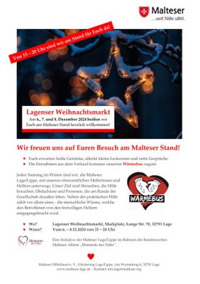 Die Malteser in Lage laden zu einem Besuch an ihren Weihnachtsmarkt-Stand ein.