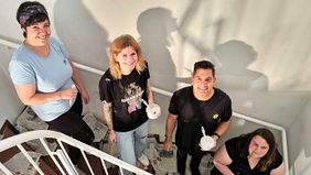 „Menschlichkeit, Zuwendung und individuelle Förderung ist genau das, was im Café Malta gebraucht und gelebt wird. Es ist schön, dass sich junge Menschen von Simovative für das Thema Demenz interessieren und einsetzen“, sagt Dietlinde Pointner, Leiterin des Café Malta. Denn „Demenz wird einen Umfang in unserer alternden Gesellschaft annehmen, den wir nicht wegignorieren können“, fürchtet Pointner. Pointer freut sich, dass drei Frauen und ein Mann die Zeit für Malerarbeiten mitgebracht haben und der Treppenaufgang im Gemeindesaal der Cantate Kirche, in dem die wöchentlichen Treffen des Café Malta stattfinden, jetzt in neuem Weiß strahlt. „Auch das Treppengeländer sieht jetzt aus wie neu“ freut sich Pointner.