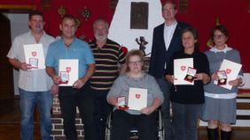 So sei es ihm eine große Freude als Zeichen der Anerkennung und des Dankes für besondere Verdienste um die Erfüllung des Malteser Auftrages Stefan Lanzinger, Martin Priller, Silvia Hofstätter, Anna Nossek und Karin Golisch je eine vom Präsidenten der Deutschen Assoziation des Souveränen Malteser Ritterordens, Dr. Erich Prinz von Lobkowicz, unterzeichnete Urkunde und die Malteser Plakette in Gold überreichen zu dürfen.