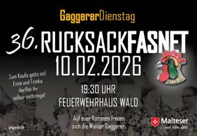 Die Malteser Rucksackfasnet in Wald ist ein einzigartiges und beliebtes närrisches Highlight. Mit viel Kreativität gestalten die Malteser und ihre Gaggerer ein fröhliches Fasnet-Event, bei dem gute Laune garantiert ist. Der Name „Rucksackfasnet“ steht für die gesellige Atmosphäre, bei der die Gäste ihre Verpflegung im eigenen Rucksack mitbringen und gemeinsam feiern. Sketche, Musik und ein buntes Programm der Gaggerer sorgen für beste Unterhaltung