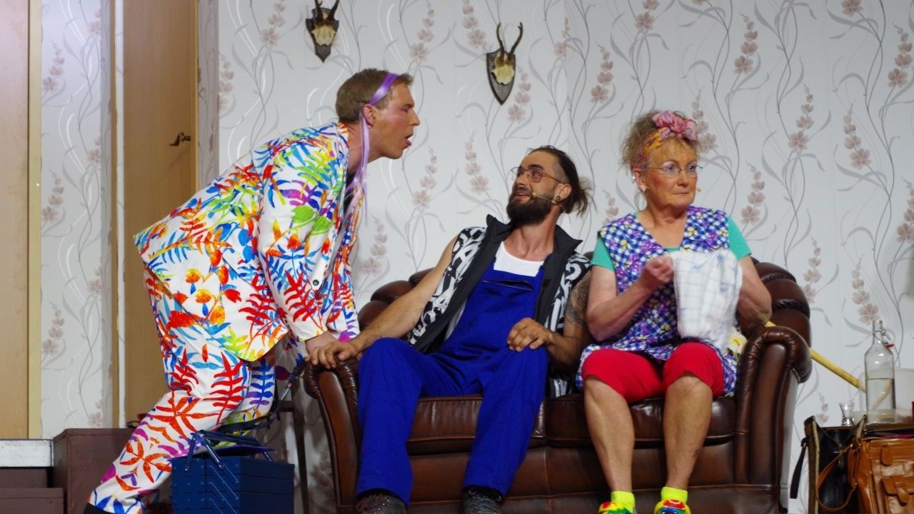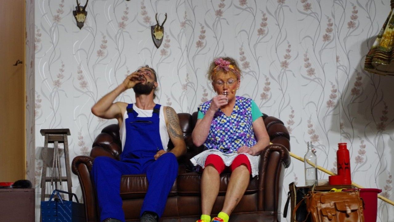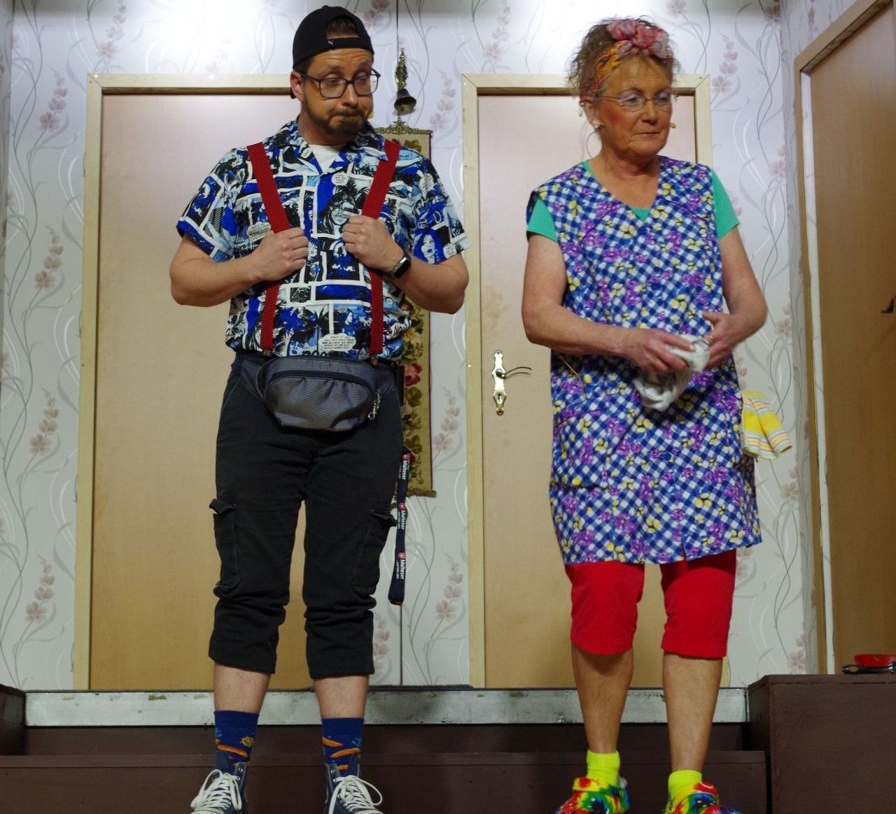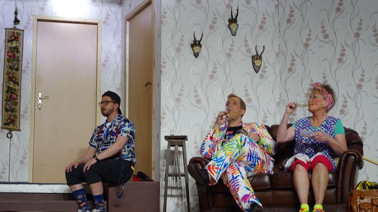 Else hatte alles im Blick und stellte ganz schnell fest, dass dies keine Wohnung, sondern ein Taubenschlag sei. Das „arme Jungchen“, kaum hatte es sich von seiner Übermutter abgenabelt, legte es sich wieder Ballast um den Hals und dann auch noch diese Schrapnelle von Malerin. Als dann noch Martins Übermutter Luzy (Rica Bechmann), die die Nabelschnur als Lasso für ihren Bubi verwendet, auftauchte und ihren Sohn wiederhaben wollte, schulterte Fred sie auf Anweisung von Else wie einen Mehlsack und beförderte sie nach draußen.