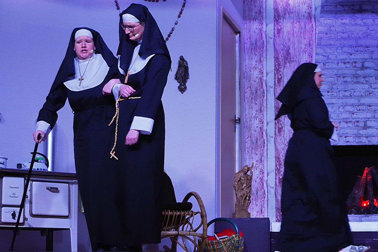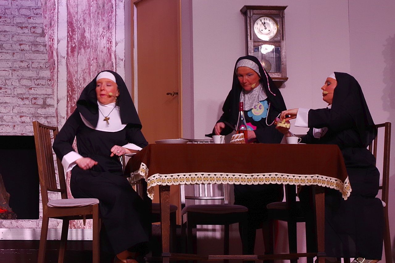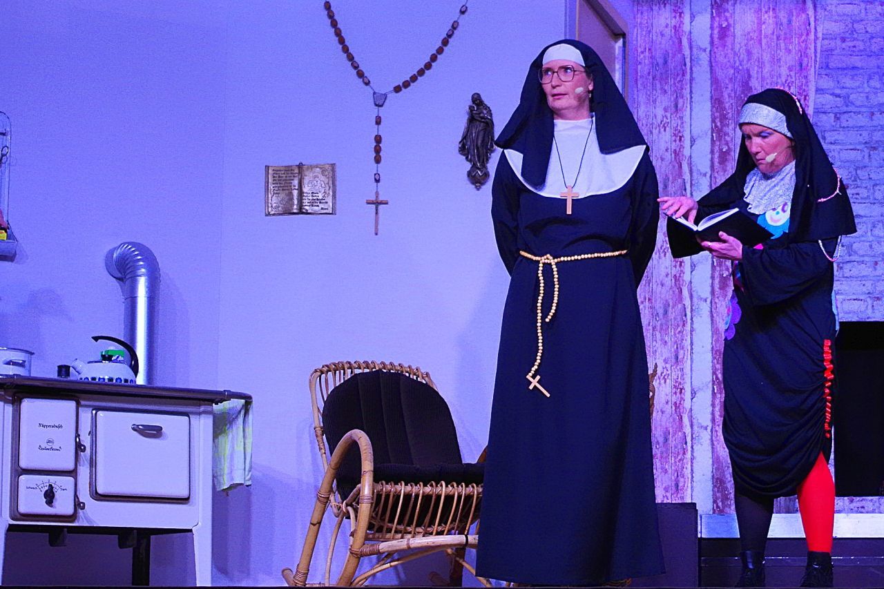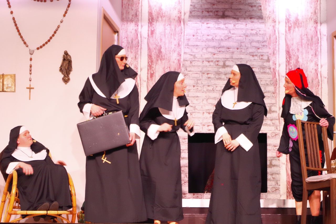 Als angebliche Klosterprüfer des Vatikans getarnt, suchen die beiden für einige Zeit Unterschlupf im Kloster. Der von ihnen mitgeführte Koffer voller Geld weckt auch bei den Klosterschwestern Begehrlichkeiten und löst in der Folge eine Kette zahlreicher Turbulenzen aus. Als dann zu guter Letzt auch noch der „Big Boss“ (Ursula Harnecker) höchstpersönlich in Erscheinung tritt, ist das Chaos perfekt und der Lauf der Dinge nicht mehr aufzuhalten.