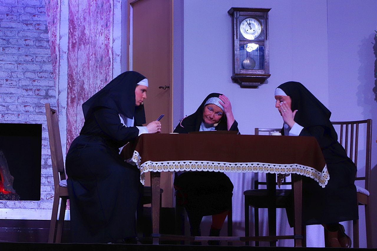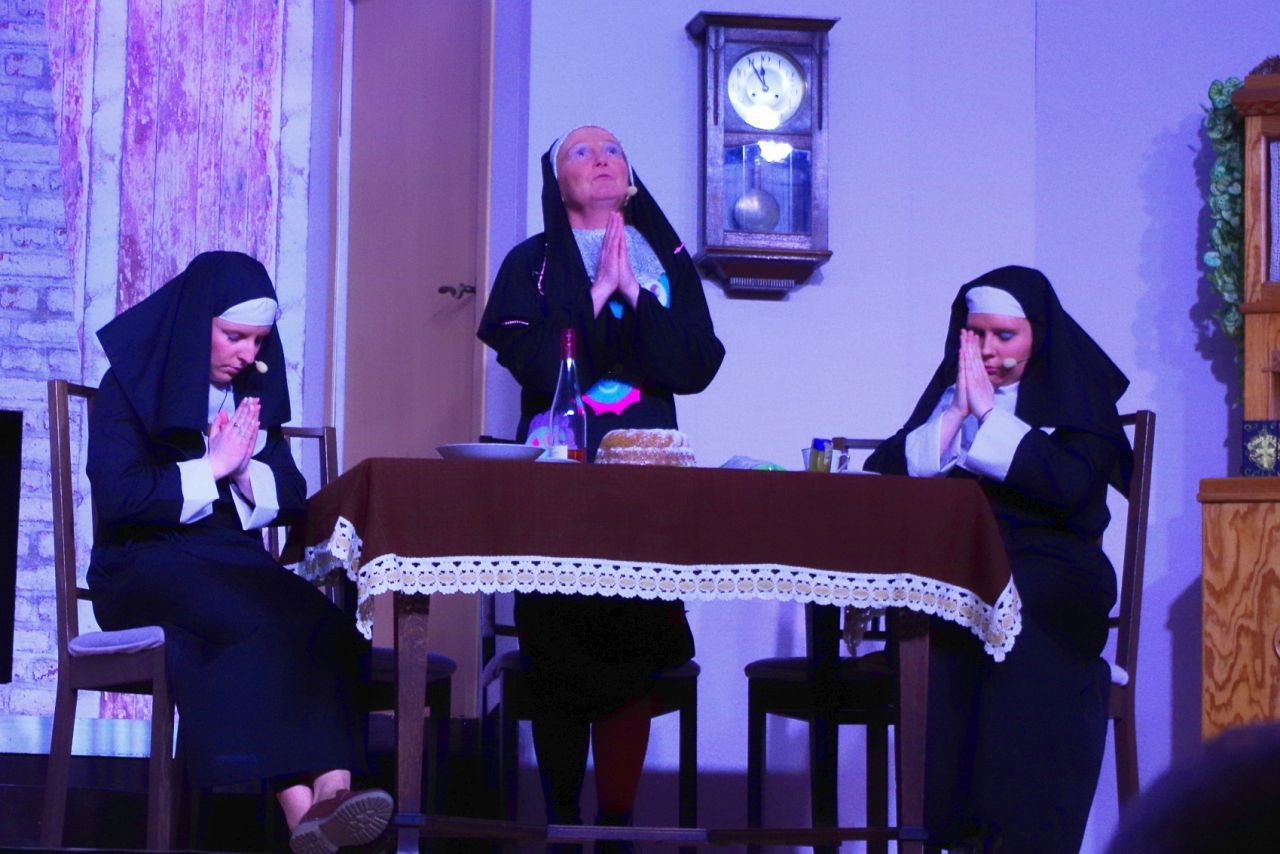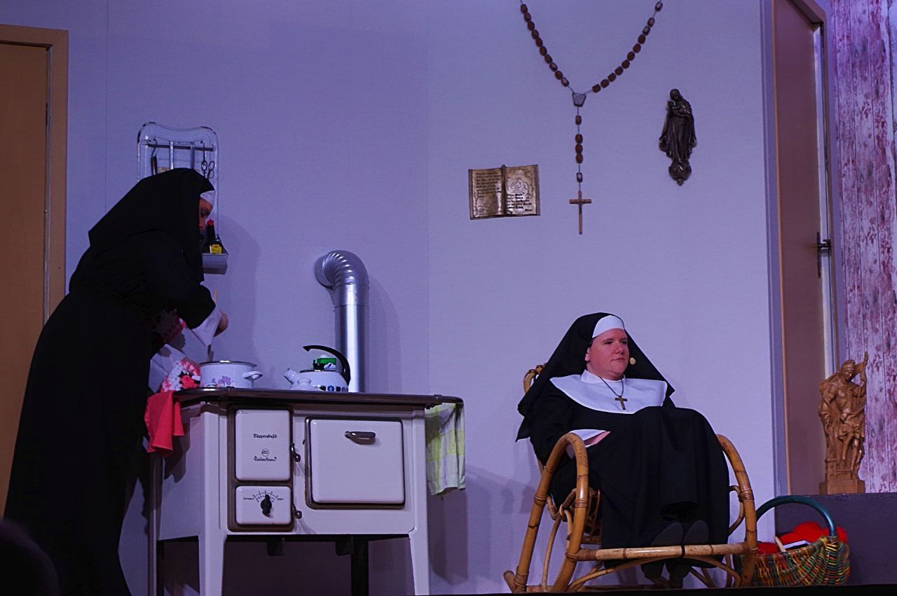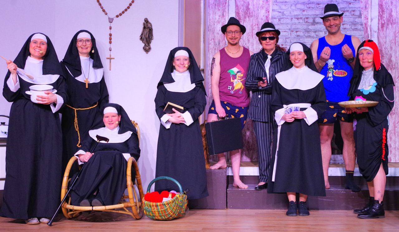 Als angebliche Klosterprüfer des Vatikans getarnt, suchen die beiden für einige Zeit Unterschlupf im Kloster. Der von ihnen mitgeführte Koffer voller Geld weckt auch bei den Klosterschwestern Begehrlichkeiten und löst in der Folge eine Kette zahlreicher Turbulenzen aus. Als dann zu guter Letzt auch noch der „Big Boss“ (Ursula Harnecker) höchstpersönlich in Erscheinung tritt, ist das Chaos perfekt und der Lauf der Dinge nicht mehr aufzuhalten.