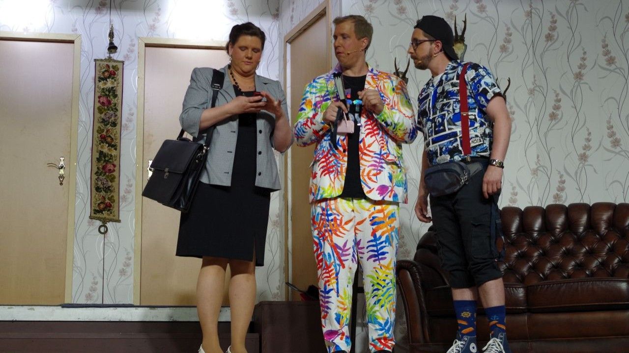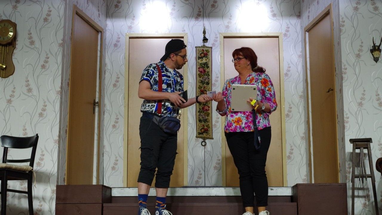Die Immobilienmaklerin (Annika Pierrón) präsentierte erst der Künstlerin Chantal Meyer (Lea Schieferstein), dann dem Muttersöhnchen Martin Martin (Sascha Karch) und ebenso dem Frisör Nobi mit seinem „Fridolin“ (Sven Schaumlöffel) die paradiesische Super-Luxus-Wohnung. Leider hatte sie nicht alle Zimmerschüssel dabei, drängte aber jeweils, dass es weitere Interessenten gebe, sodass alle drei anstandslos die Kaution von 3000 Euro zahlten. Alle Mieter erhielten zwar einen Schlüssel versprachen aber erst am übernächsten Tag einzuziehen und sollten dann auch den Mietvertrag und die Quittung erhalten, denn der Handwerker (Marco Porth) musste im Bad noch etwas reparieren und die Putzfrau – das Neutrum – Else Kobinsky (Freia Schmitt) die Wohnung auf Vordermann bringen.