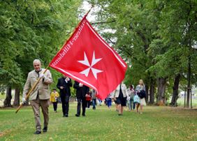 Mit der Malteserfahne voran zur Kreuzbergkapelle in Ottbergen; Bildquelle: Lukas/Malteser