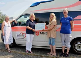 Mehr als 3000 Mitarbeiterinnen und Mitarbeiter - vorwiegend aus der Produktion der Golf-Reihe - seien durch diese Spendenaktion erreicht worden, berichteten Kornelia Kindermann, Erste Sprecherin der Frauen im Bereich Montage B3 und Organisatorin der Aktion, sowie Sabine Musiol-Wegner, VW-Betriebsrätin Montage, und Alexandra Bruns, VW-Flächenvertrauensfrau, bei ihrem Besuch in der Malteser-Dienststelle. Von Ende Februar bis Mitte April waren sie mit der Sammelbüchse durch die Produktionshallen gegangen und hatten gesammelt. Gespendet hätten aber nicht nur Frauen, sondern auch Männer, stellen die drei Frauen klar: Der Gedanke, dass man sterbenskranken Menschen noch eine letzte Freude bereiten könne, habe viele überzeugt, so Kindermann, Musiol-Wegner und Bruns.