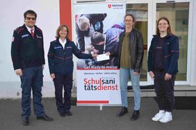 Würzburg. 300 Euro vom Überschuss des Kinderkleidermarktes Zellerau übergab die Organisatorin Juliane Erdinger an die Malteser Würzburg für ihren Schulsanitätsdienst. „Das ist wunderbar und hilft uns sehr bei der Umsetzung dieses Dienstes“, freuten sich Heike Fleischmann und Michael Kiesel von der ehrenamtlichen Malteser Stadtleitung bei der Spendenübergabe. Die Malteser Würzburg bilden Schulsanitäter an sechs Würzburger Schulen aus und begleiten sie während der Schulzeit mit regelmäßigen Fortbildungsangeboten und der Möglichkeit, sich darüber hinaus bei den Maltesern ehrenamtlich zu engagieren. „Das trägt auch zur Gewaltprävention bei“, ist Heike Fleischmann überzeugt. Nicht umsonst sei ein Kerngedanke des Schulsanitätsdienstes „Hände, die helfen, schlagen nicht“. Aber nicht nur das: auch berufliche Perspektiven können sich durch das sanitätsdienstliche Engagement an der Schule ergeben, erzählte die ehemalige Schulsanitäterin Lisa Stadelmann, die gerade ihr Freiwilliges Soziales Jahr im Bereich Erste-Hilfe-Ausbildung bei den Maltesern beendet hat. Sie strebt nun einen Studienplatz in Medizin an. Der Kinderkleidermarkt in der Zellerau ist eine feste Institution und erfreut sich großer Beliebtheit. Zweimal im Jahr organisiert Juliane Erdinger und ihr Team seit 2011 diesen großen Kleidermarkt, bei dem in der Aula des Friedrich-Koenig-Gymnasiums Bekleidung, Sportartikel, Spielsachen und ähnliches verkauft werden können. Alle Verkäuferinnen und Verkäufer zahlen eine Gebühr, eine Cafeteria wird ebenfalls angeboten und mit den Überschüssen werden Einrichtungen in der Zellerau unterstützt, die für Kinder aktiv sind.