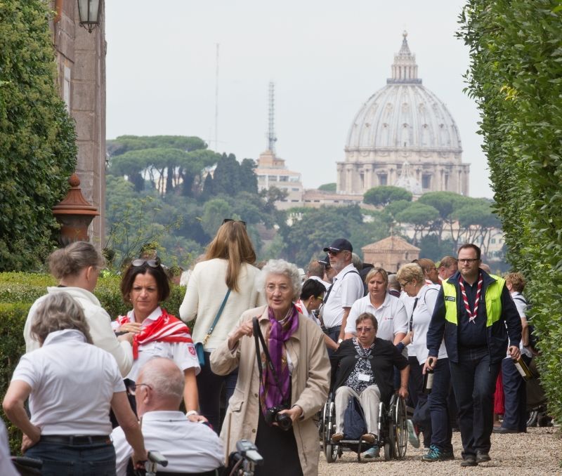 Die Pilgerinnen und Pilger aus deutschen Diözesen reisen in Begleitung von Ärztinnen und Ärzten, Pflegern, Krankenschwestern, Seelsorgern, Helferinnen und Helfern nach Rom und wohnen in behindertengerechten Unterkünften vor den Toren der Stadt. Von dort steuern die Busse täglich in ausgefeilter Logistik die Sehenswürdigkeiten im Zentrum Roms an. Unterwegs unterstützen viele helfende Hände beim Bezwingen von hohen Bordsteinkanten, Treppen und Kopfsteinpflaster und ermöglichten den Pilgerinnen und Pilgern, von denen viele auf Rollis angewiesen sind, was sonst nicht möglich wäre.