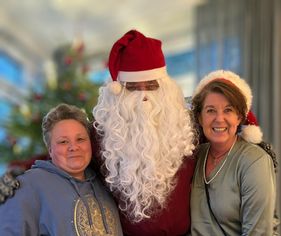 Ein beliebtes Musik-Duo (Akkordeon und hauseigenes Klavier) sorgte mit stimmungsvollen Weihnachtsliedern für eine festliche Atmosphäre und lud alle zum Mitsingen ein. Birgit Obloch, Mitarbeiterin der sozialen Betreuung, trug eine Weihnachtsgeschichte vor und sorgte damit für zusätzlichen Zauber bei den Feiern. Beim gemeinsamen Weihnachtskaffe erfolgte die besondere Überraschung: der Weihnachtsmann höchstpersönlich schaute vorbei und beschenkte alle mit liebevoll vorbereiteten Geschenken.