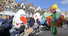 Dieses Jahr erfreute sich das Malteserstift Haus St. Birgitta wieder an der Teilnahme an der Riesenosterei-Parade. Unter der Leitung von Herrn Markus Lebeck und begleitet von vielen Bewohnenden, Mitarbeitenden, Ehrenamtlichen sowie der hauseigenen Rikscha ging es am Ostersonntag im strahlenden Sonnenschein am Wasser entlang vom Kreuzfahrtterminal in Richtung Brüggmanngarten, wo die Eier noch einige Tage bestaunt werden konnten. Unterstützt wurde das Malteserstift Haus St. Birgitta von der Malteserjugend aus Lübeck.