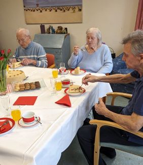 Im Malteserstift Haus St. Birgitta findet alle zwei Monate das „Geburtstags-Café“ statt. Dabei können alle „Geburtstagskinder“ der vergangenen zwei Monate ihren Geburtstag noch einmal zusammen mit Mitbewohnerinnen und Mitbewohnern sowie Mitarbeitenden feiern. Es wird standesgemäß auf die Geburtstagskinder angestoßen, ein Geburtstagsständchen gesungen und die Geburtstagstorte – letztes Mal auf Wunsch der Bewohnerinnen und Bewohner Marzipantorte – darf natürlich nicht fehlen. Bei Kaffee und Kuchen können sich alle über die vergangenen Jahre und spannende Erlebnisse austauschen.