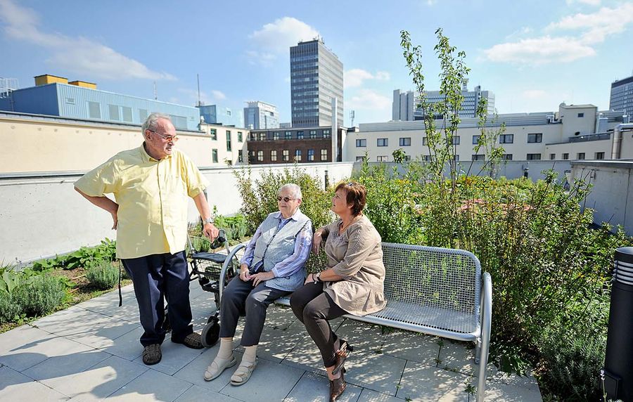 - Andachtsraum, Cafeteria, Frisör, Fußpflege und großer Dachgarten