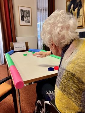 Die diesjährigen Olympischen Winterspiele 2026 fanden in Italien statt – und die Mitarbeitenden des Sozialen Dienstes sowie der Alltagsbegleitung im Malteserstift St. Bonifatius holten das Ereignis direkt ins Haus. An einem Nachmittag wurde es für die Bewohnernden „frostig“ und spannend. Das Sportereignis des Jahres war in sechs abwechslungsreiche Disziplinen aufgeteilt: Tischhockey, Eis-Rallye (Eiswürfel schnellstmöglich umfüllen), Schneeballwerfen (mit Socken), Winterwörter-Raten, Schneekehren mit Besen und Ball sowie – als besonderes Highlight – das Schneeflocken-Pusten mit dem Strohhalm. Alle Disziplinen kamen bei den Beteiligten sehr gut an. Zum Abschluss gab es mehrere Siege, die jeweils mit Medaillen (Platz 1 bis 3) und Urkunden belohnt wurden.