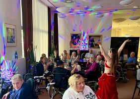 In der „Boni Bar”, einem neuen Angebot des Sozialen Dienstes im Malteserstift St. Bonifatius, kam im Mai orientalische Stimmung auf. Einmal im Monat verwandeln die Mitarbeitenden die Cafeteria der Pflegeeinrichtung in eine stimmungsvolle Bar, jedes Mal unter einem neuen Motto. Musik, Deko und Cocktails entsprechen der Themenwahl. Das Motto im Mai war „Orient”. Als Highlight des Abends begeisterte eine Bauchtänzerin die Bewohnerinnen und Bewohner mit Tänzen aus 1001 Nacht.