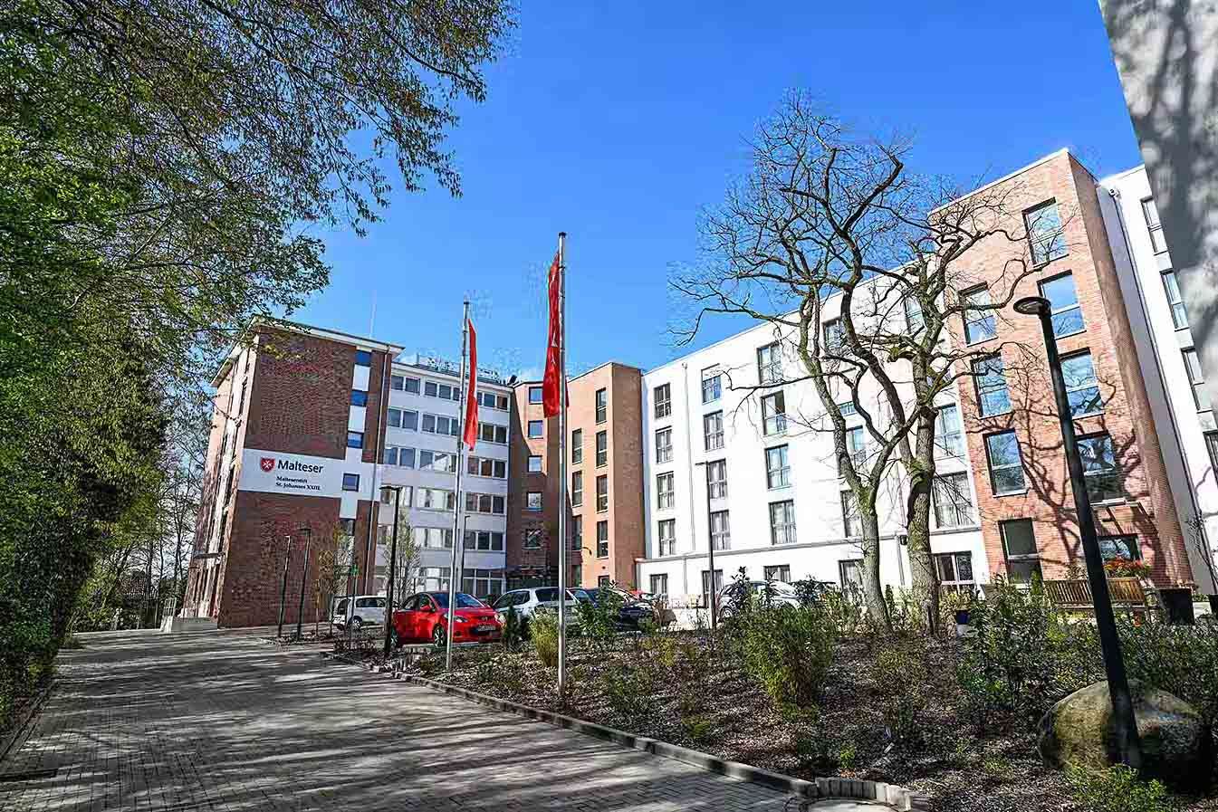 Das Malteserstift St. Johannes XXIII. in Hamburg-Lohbrügge liegt in einer parkähnlichen Anlage mit hübschen Teichen und Pflanzen. Das Haus befindet sich inmitten eines ansprechenden Wohngebietes, in wenigen Gehminuten erreicht man ein kleines Einkaufszentrum. Die Pflegeeinrichtung wurde in 2022 kernsaniert und um einen Neubau erweitert.