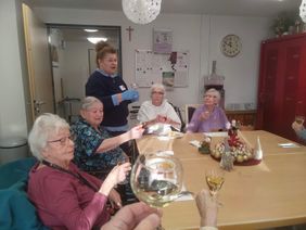 Auch in den Wohnbereichen war die festliche Atmosphäre spürbar. In kleinen Runden wurde zusammengesessen, angestoßen und die Gemeinschaft gefeiert.