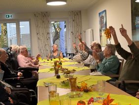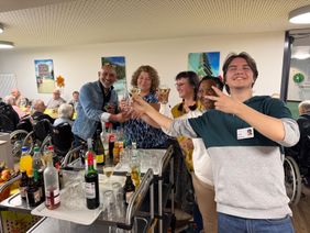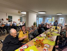 Bei mildem Herbstwetter, einem Glas Wein oder Bier in der Hand und umgeben von fröhlichen Gesichtern genossen alle Anwesenden die heitere Atmosphäre auf dem festlich geschmückten Platz. Schon beim Betreten des Geländes war zu spüren: Hier herrschte Lebensfreude pur. Das Lachen der Besucherinnen und Besucher, das Klirren der Gläser und die fröhliche Musik erfüllten den Raum. Viele Bewohnerinnen und Bewohner ließen sich von der guten Laune anstecken, schunkelten im Takte der Musik und klatschten begeistert mit. Ihre strahlenden Gesichter spiegelten die Begeisterung und den Gemeinschaftsgeist wider, der das Fest prägte. Ein besonderes Highlight war die musikalische Darbietung von Mr. FunBo, der mit einem abwechslungsreichen Repertoire aus beschwingten Schlagern, beliebten Volksliedern und modernen Klassikern für beste Stimmung sorgte. Schon nach wenigen Takten wippte der ganze Saal im Rhythmus, und so mancher ließ sich zu einem spontanen Tänzchen hinreißen. Besonders bewegend war der Moment, als auch einige gesundheitlich eingeschränkte Bewohnerinnen und Bewohner aktiv am Fest teilnahmen. Selbst demenziell Erkrankte erkannten vertraute Melodien wieder, sangen Teile der Texte mit und schaukelten sanft im Takt. In ihren glänzenden Augen spiegelten sich Freude und Lebendigkeit – ein Augenblick, der vielen Anwesenden ans Herz ging.