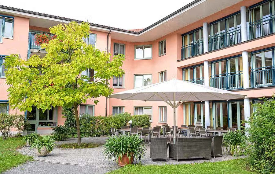 - Andachtsraum, Cafeteria, Frisör, Fußpflege und schöne Gartenanlage