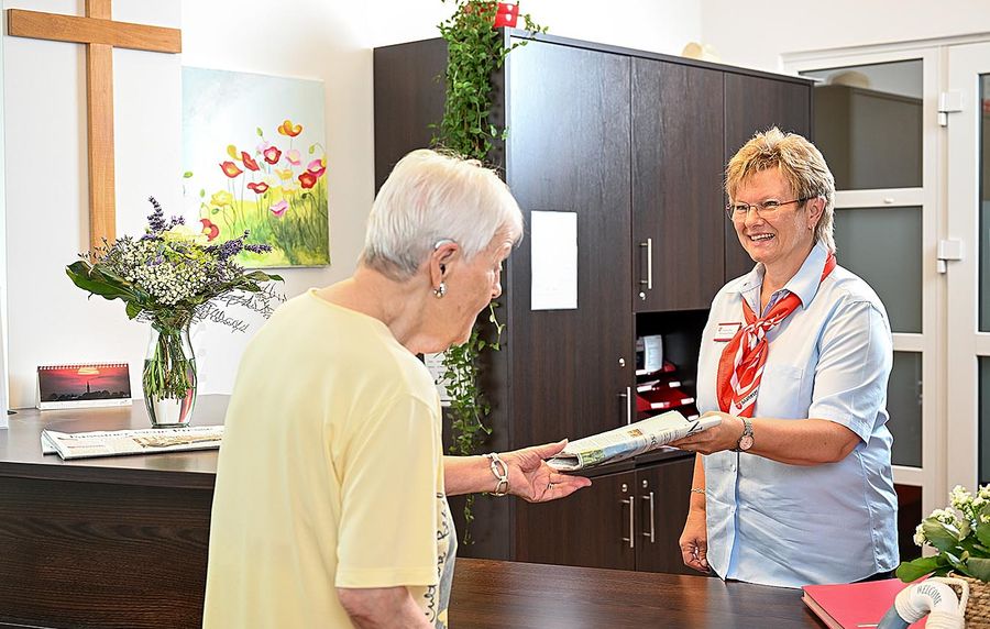 - Andachtsraum, Cafeteria, Frisör, Fußpflege und schöne Gartenanlage