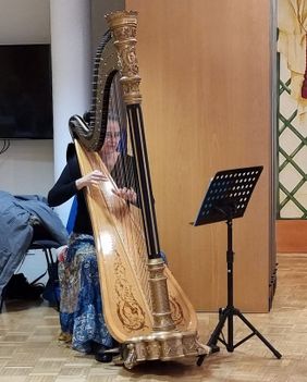 Am 06.12.2024 durften die Bewohnerinnen und Bewohner des Malteserstift St. Stephanus einen besonderen Nachmittag erleben. Die Harfenistin Uta Deilmann besuchte die Einrichtung und verzauberte die Anwesenden mit den herrlichen Klängen dieses königlichen Instrumentes.Besonders die Titelmelodie des bekannten Weihnachtsfilms "Drei Haselnüsse für Aschenbrödel" rührte viele zu Tränen und ließ so manche Taschentücher zum Einsatz kommen.Nach dem Konzert beantwortete Frau Deilmann noch zahlreiche Fragen zu ihrer faszinierender Harfe.