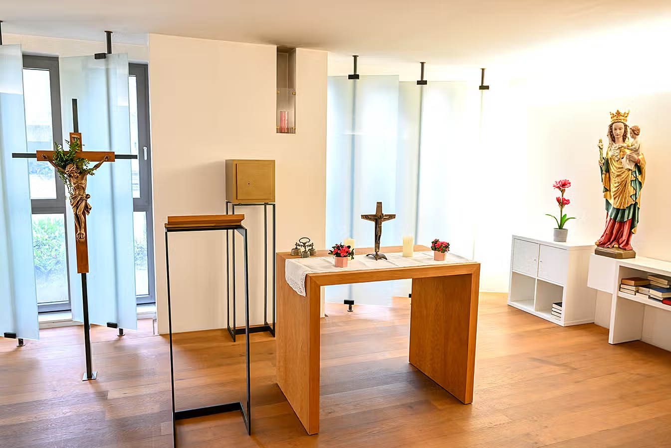 - Andachtsraum, Cafeteria, Frisör und eine Dachterasse