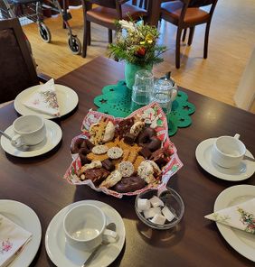 Im Rahmen der Adventszeit fanden gemütlichen Adventscafés statt, die sowohl den Seniorinnen und Senioren, als auch den Mitarbeitenden eine kleine festliche Auszeit boten. Bei einer warmen Tasse Kaffee und leckerem, weihnachtlichem Gebäck wurden gemeinsam traditionelle Lieder gesungen, die für eine besinnliche Stimmung sorgten. Dazu wurden Gedichte und Geschichten vorgetragen, die das Weihnachtsgefühl noch verstärkten und die Vorfreude auf das Fest spürbar machten.