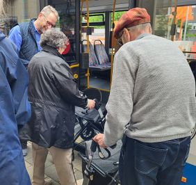 Vor kurzem konnten die Bewohnerinnen und Bewohner des Malteserstifts St. Antonius an einem Rollator-Training der Stadtwerke Solingen teilnehmen. Das Training zielt darauf ab, die Senioren im Umgang mit ihren Rollatoren gerade im Straßenverkehr zu stärken und ihnen Tipps und Hilfestellungen mitzugeben. Die zwölf teilnehmenden Bewohnerinnen und Bewohner wurden gemeinsam mit drei Mitarbeitenden vom sozialen Dienst mit einem Linienbus der Stadtwerke Solingen an der Einrichtung abgeholt. Dort zeigten Jürgen Dahlmann und Jürgen Huber, Mitarbeitende der Stadtwerke Solingen, wie man mit einem Rollator in einen Bus einsteigt und die Seniorinnen und Senioren konnten den Einstieg direkt üben. Als schließlich alle im Bus saßen, ging es los in Richtung Busbahnhof Graf Wilhelm Platz. Auf dem Weg erklärten Herr Dahlmann und Herr Huber unter anderem, wie man sich mit Rollator im Bus verhält, wie man den Rollator abstellt und wie sich die Bewohnerinnen und Bewohner vor Taschendieben schützen können. Am Busbahnhof angekommen wurde nochmals der Ein- und Ausstieg geübt, bevor zu Kaffee und Kuchen in die Betriebskantine der Stadtwerke Solingen eingeladen wurde. Alle Teilnehmenden haben an dem Tag viel gelernt und wissen nun, wie sie sich mit- und ohne- Rollator im Straßenverkehr verhalten müssen.