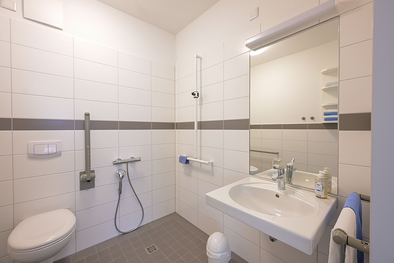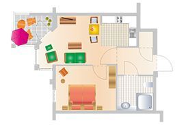 - Das Wohnangebot umfasst rollstuhlgerechte Ein- bis Zweieinhalb-Zimmer-Wohnungen in unterschiedlichen Größen mit Küche/Kochnische, Fernseh-, Radio- und Telefonanschluss.